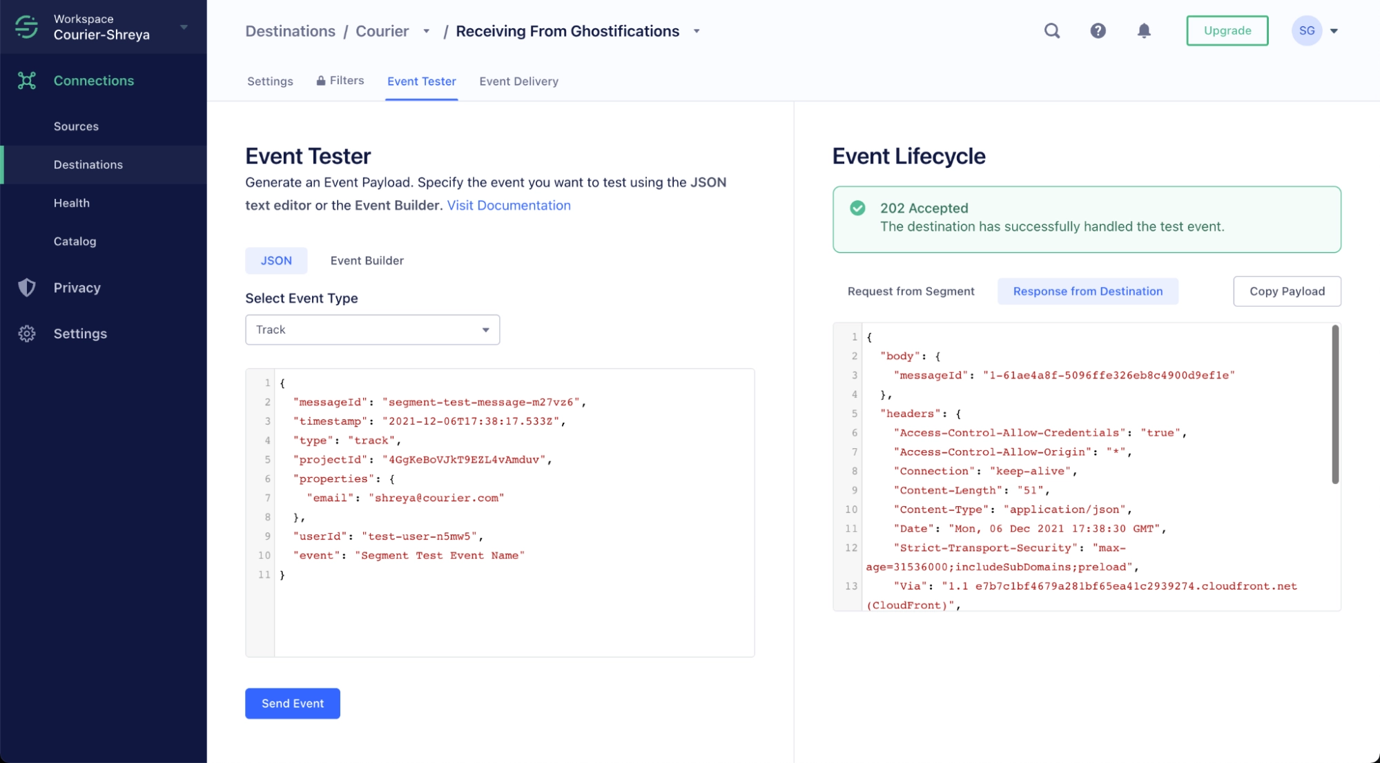 - Configure Courier as a Segment destination