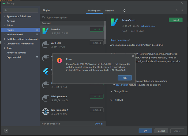 To start using it, go to File -> Settings -> Plugins. Then go to the Marketplace tab and enter “code with me**”**. But this is the ideal case. As you know, life is not perfect.