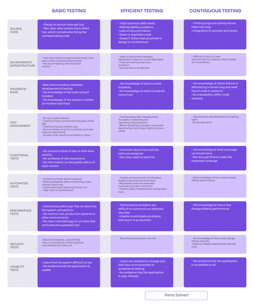 Associated with this analysis, the following chart shows some of the most common pain points that each level of maturity manages to eliminate or solve: