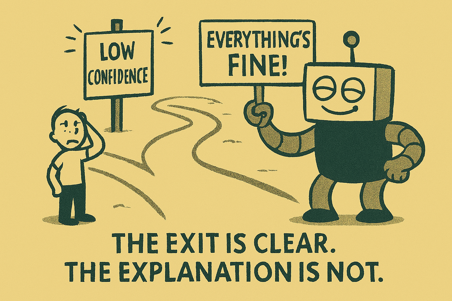 - When the system can’t answer, does it pivot with a precise, context‑aware exit — or default to vague filler? → Exposes whether exits are designed to preserve trust or silently kill it.