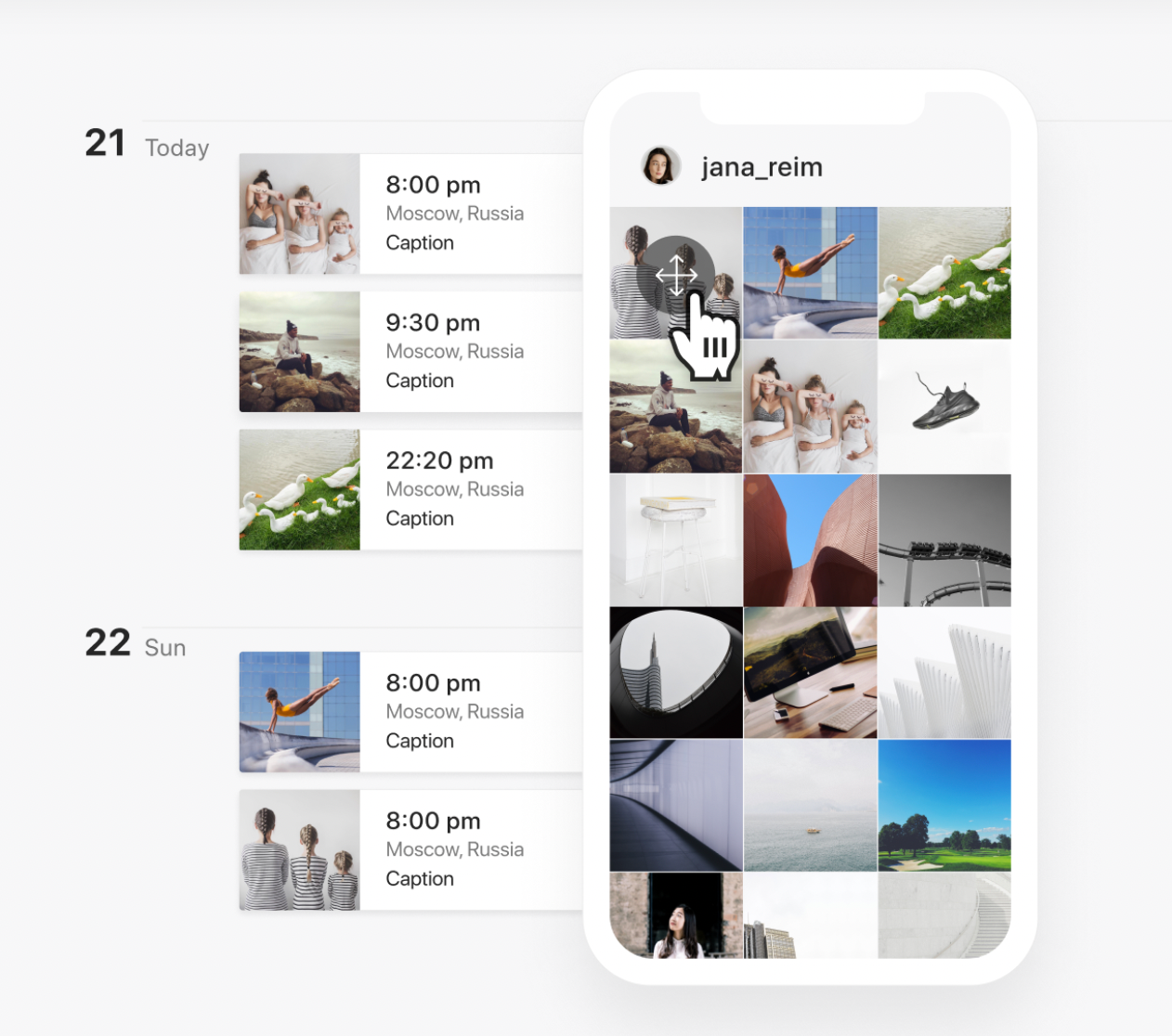 ⚡Tip: preview your Instagram grid layout with Combin Scheduler, an unparalleled Instagram planning tool. Curate a stylish Instagram profile with a solid visual voice using a simple drag-and-drop feature.