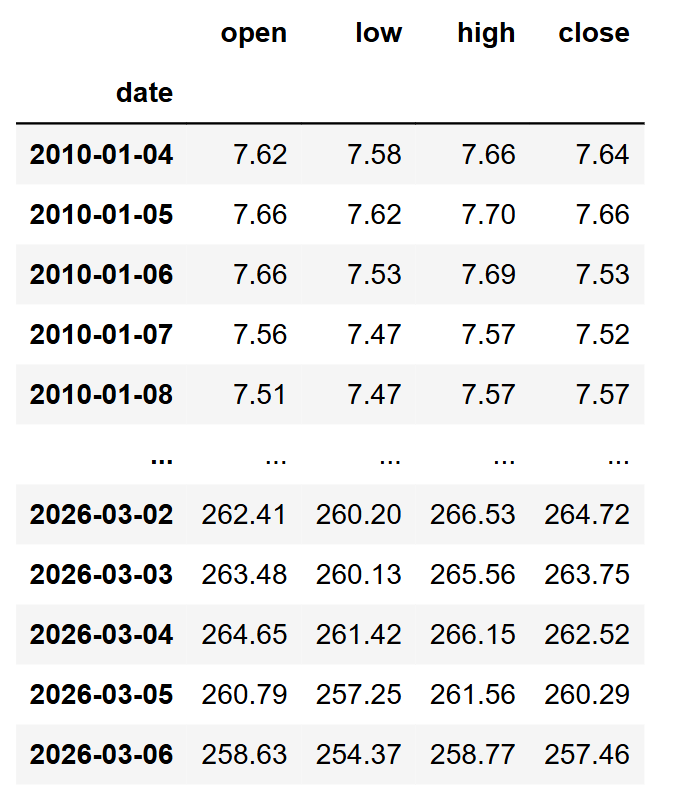 prices = pd.read_csv("AAPL_prices.csv", index_col='date')