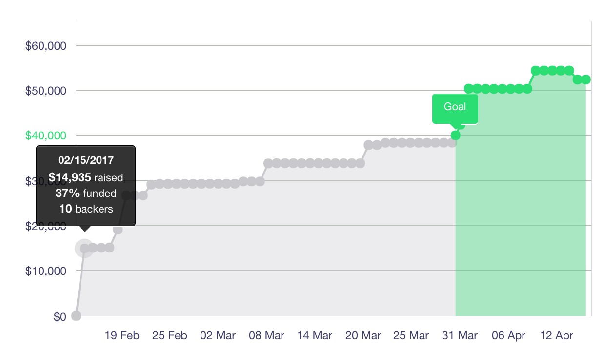 First, as mentioned above, Kickstarter provides no guarantee that you’ll actually receive pledged funds. Forgive me for going on a bit of a rant, but this is a huge failing on the part of Kickstarter in my opinion. Before running our campaign, we assumed that Kickstarter had an escrow service built into their model. This would mean that as a backer, you pledge funds and only have to pay if the creator’s goal is met. As a creator, you would have assurance that if someone pledged money to your campaign and you successfully reached your goal, you’d be guaranteed those funds. This is not the case. Backers have something akin to an escrow guarantee, but creators have no protection whatsoever. Backers can cancel or have their credit cards bounce, and you will get nothing. This could potentially be a huge problem for a project like ours that relied on a smaller number of big-ticket pledges. If we’d gotten unlucky and had a few people back out last minute we really could have been screwed. It ‘s disappointing to me that creators act as a salesforce for Kickstarter, have to pay them a hefty fee, and get no security in return. This technology would be an investment for them, but in my opinion is a requirement and leaves me hoping for a blockchain-based competitor with lower fees and actual two-way guarantees to come along and give creators a better deal.