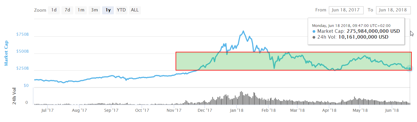 After our predictions from previous weeks, we have reached crucial support at 270 billion market cap. We should see some action from that level this week. It’s just hard to say what the trigger can be.