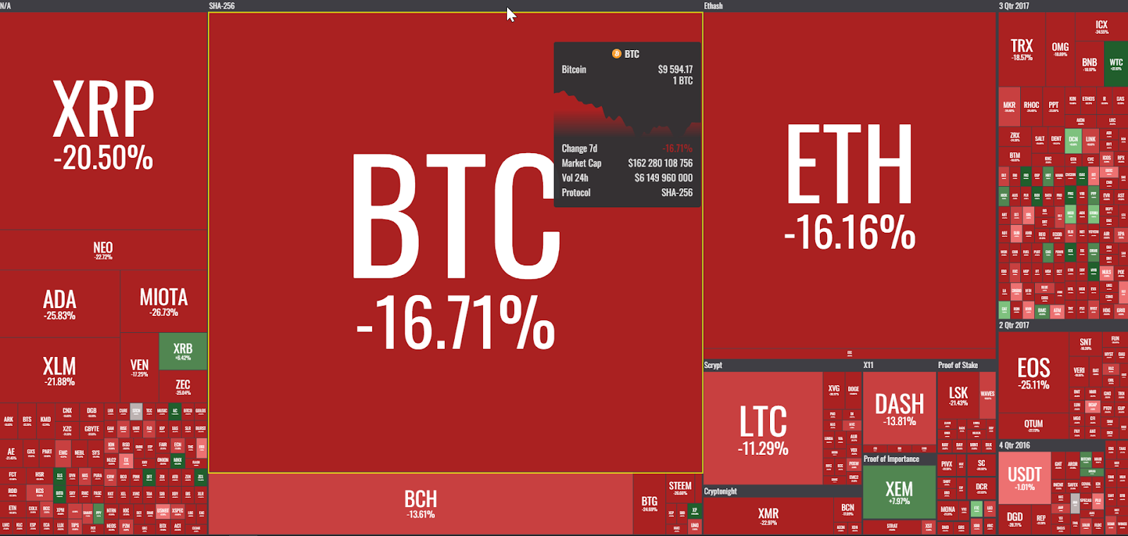 Last week, all main coins noted selloff. The only winner for this week is NEM which raised about 8%.