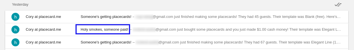 Mixed in with the standard “Someone’s getting placecards!” emails that I get pretty regularly was an email I had only ever seen before in testing.