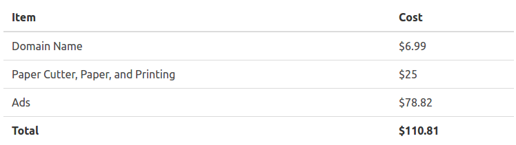 You might be wondering where my server costs are, and I’ll admit that I’m cheating a bit on that one. I host all of my projects on the same server — one that I’ve been paying for for more than five years — so I’m not including that in the budget for this project specifically. In reality I should probably include a portion of those costs here.