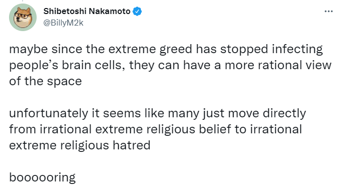 Billy Markus, co-founder of Dogecoin, tweeting about the crypto bear market