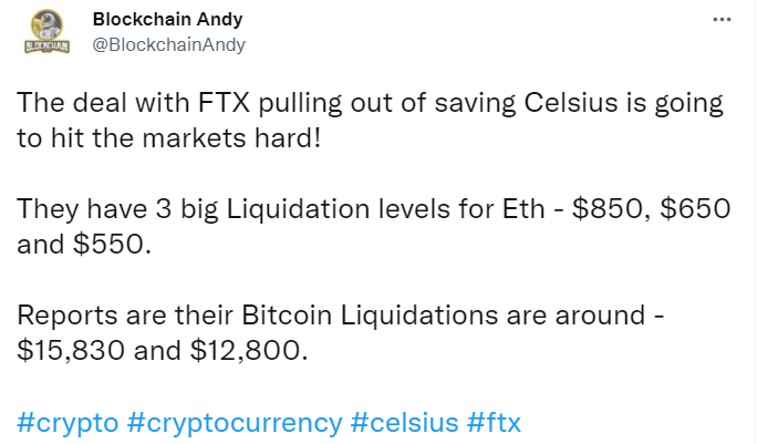 Tweet regarding Celsius on June 30 from @BlockchainAndy