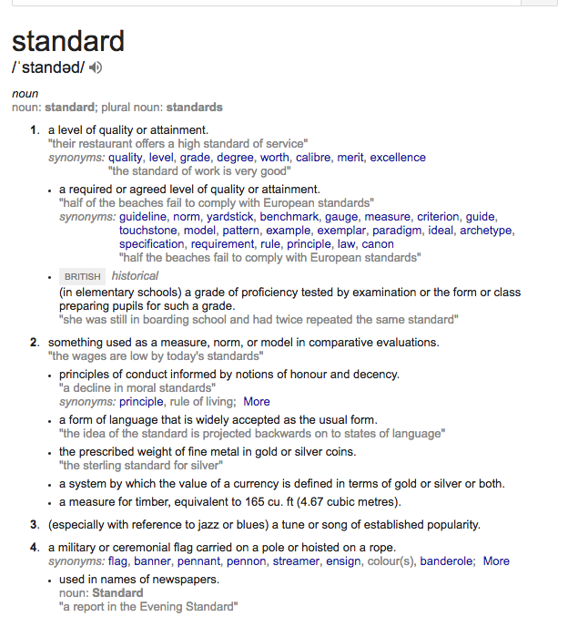 A quick google shows us the definition of “standard”