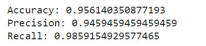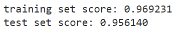 We were able to achieve an accuracy of 95.6% which is very good. Let’s compare the training and test scores to check for overfitting…