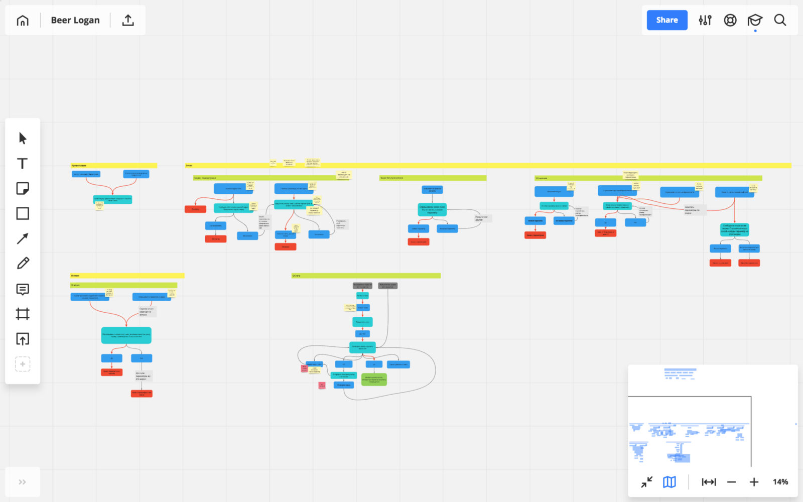 - Huge map of the dialogue. Detailed and intuitive way from point A to point B, the entire labyrinth of confusing user’s movement toward the goal. For such a task the regular white board is not suitable. Just imagine how to write all words and then drag them to the developers. And we still have to agree with the team what common symbols we use on the map. Gosh!
