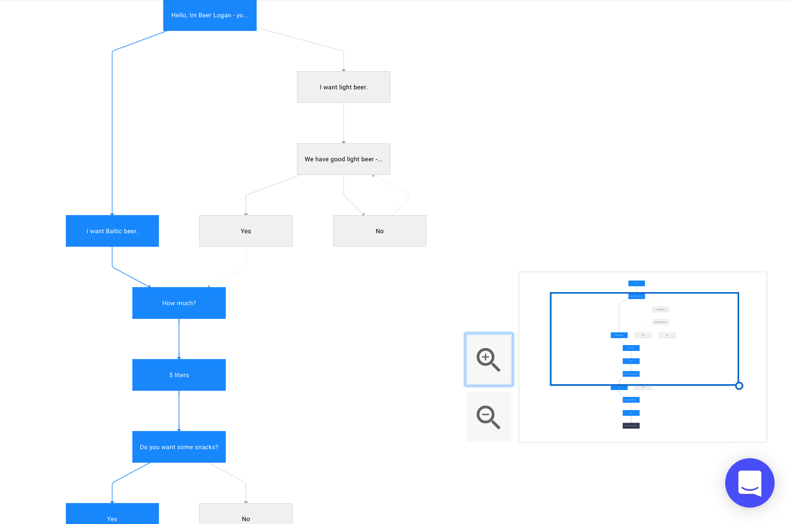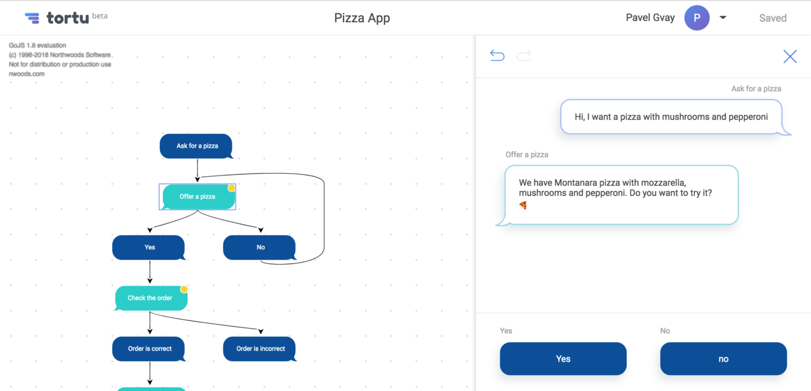 - Building a dialog tree. To take into account all the variants of the course of events, all the steps that will lead the user to a hypothetical “pizza order”, it is worth to visualize all the actions. I avoid confusion by drawing a dialog tree in the form of a flowchart.