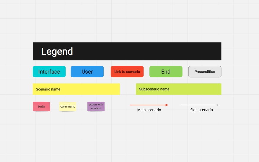 The map is constructed from two main blocks — the user step and the interface step. Steps are added and linked conveniently, and also automatically aligned. This saves time. The tool is very flexible and allows you to associate any step with any other, the number of links is not limited. The map can be divided into scenarios.