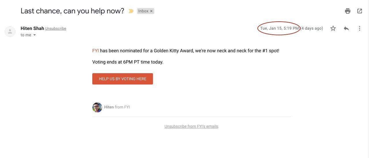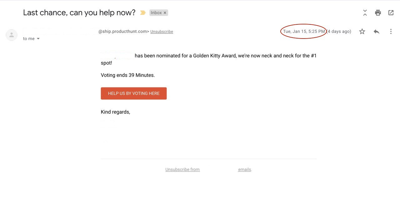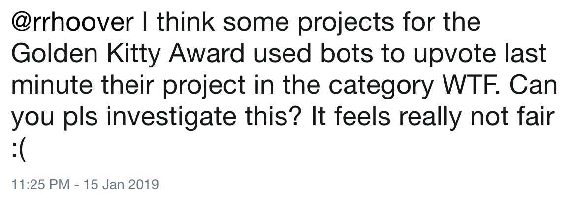 We sent an email about the Golden Kitty awards to an FYI email list, only for it to be copied almost word for word by another product in the Lifehack category. Their email was sent out minutes after our email.