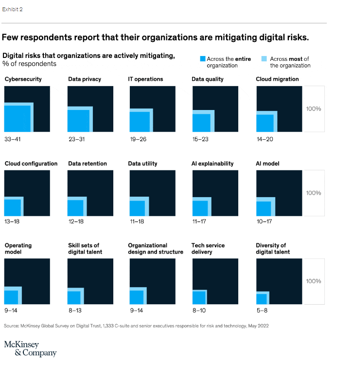 According to McKinsey’s report, among the executives responsible for risk and technology, most companies still don’t have comprehensive digital risk mitigation strategies and have a lot to work on.