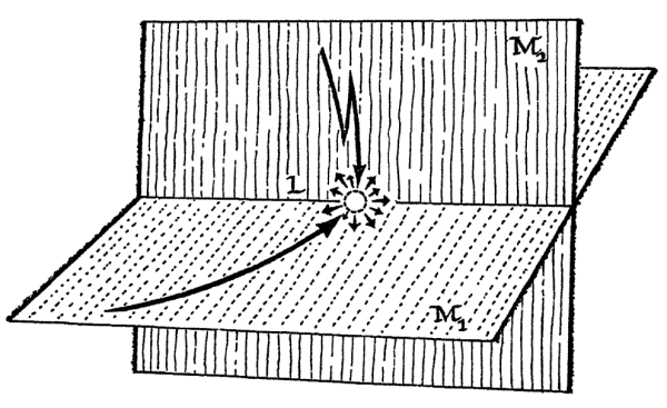 The underlying pattern, Koestler writes, “… is the perceiving of a situation or idea, L, in two self-consistent but habitually incompatible frames of reference, M1 and M2. The event L, in which the two intersect, is made to vibrate simultaneously on two different wavelengths, as it were. While this unusual situation lasts, L is not merely linked to one associative context, but bisociated with two.”