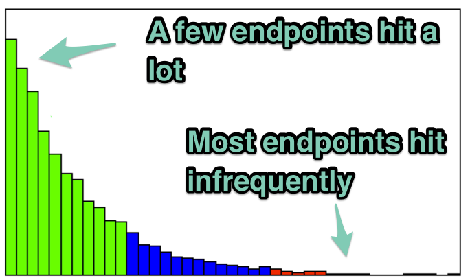 However, there is one incorrect assumption underlying the argument. Yan puts forward an API where every endpoint is hit with the same amount of traffic to analyze the effects of cold starts. In reality, almost no APIs have uniform traffic across all endpoints. Most API endpoint traffic follows a pattern similar to the natural power law. A few endpoints will have a high amount of traffic, but most will have much less. A few endpoints will have very little traffic.
