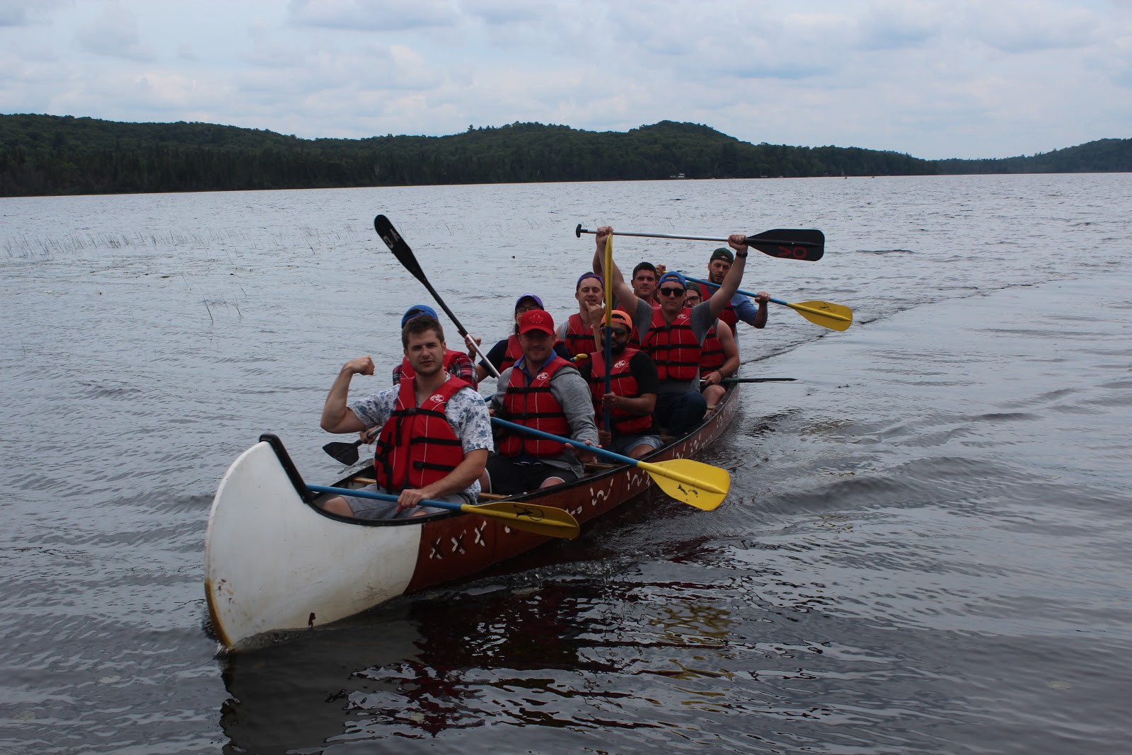 This part of the retreat is mostly planned out by the company we work with in Algonquin. It’s essentially a scavenger hunt: this year, teams got into canoes with a map and a punch card. They had to canoe over an entire lake, hit up a few key checkpoints and complete a challenge activity to get a stamp on their race card. There is also a time constraint, so you have to be strategic with your time doing all the mandatory checkpoints and as many elective ones as possible before racing back.