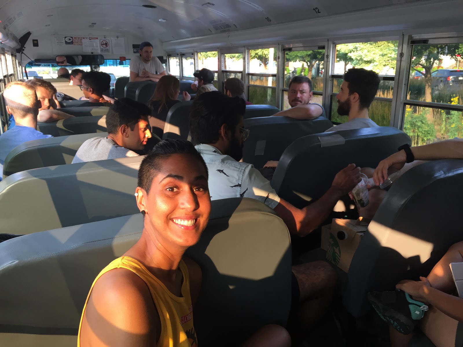 This is the first of a couple postcard moments you want to create: yellow school bus in the middle of downtown, good coffee waiting for the team, breakfast snacks and stressing about the last person to arrive (or else we will leave, no joke).