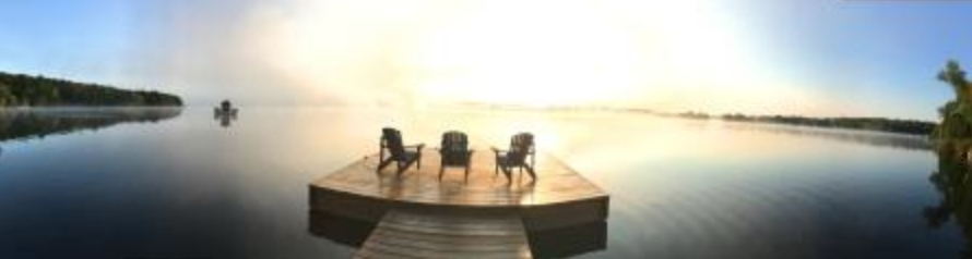 They walk up to the dock, the lake and view is perfect, and between the two Adirondack chairs are couple of coolers full of ice with some cold drinks in it.