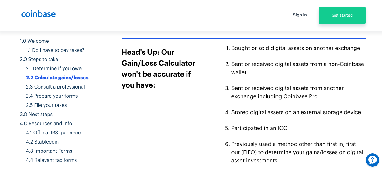 As you can see pictured below, Coinbase explains to their users themselves that their generated tax reports won’t be accurate if you have done any of the following: