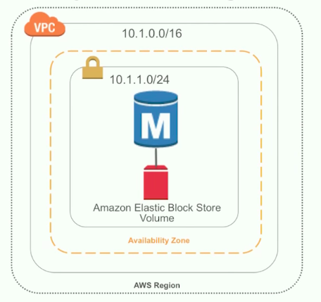 1 volume for data, 1 database instance for DB’s operation. The database should be up and available at any time. It’s obvious, running a single availability zone deployment may not be the best approach.