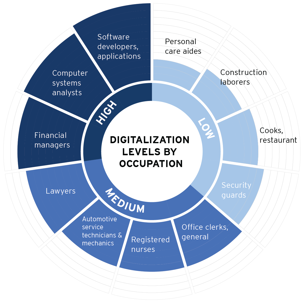 Select Occupations and digital skill level, 2016. Source: O*Net, OES, and Moody's data analysis done by Brookings.