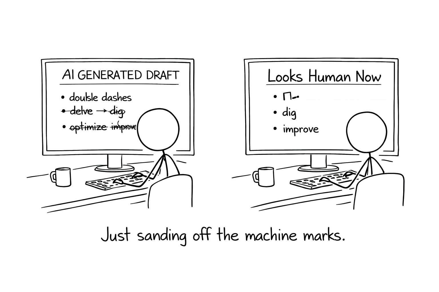 We’re adjusting to a tool that works too well, too fast, and too visibly. So we disguise it. We sand off the tells. We pretend our clarity just mysteriously improved.