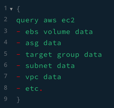 The first idea is that data should include built-in relationships between related services. When you query an EC2 Instance, you should be able to easily understand information about its EBS volumes, the ASG to which it belongs, target groups, as well as its subnet and VPC. These “connections” between resources often tell a story of how a component is used as part of a larger system, which can be very useful in solving all manner of day-to-day operational issues.