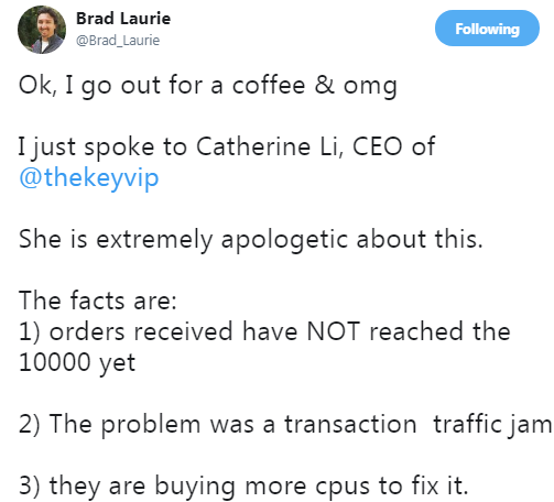 TheKey ICO Fail — Hmm you need more “CPUs” to handle increased traffic hey?