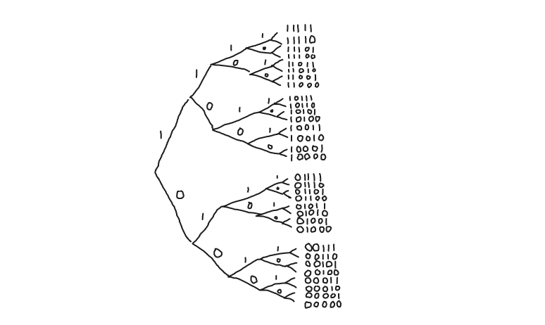 Binary demonstrates the combinatorial “Rule of Product”. There are 2^n binary sequences of length n.