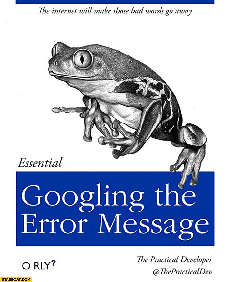 Start by Googling (or you can google with Bing) the error message. There’s a reason this, too, has inspired humorous memes and book covers — it works a great deal of the time.