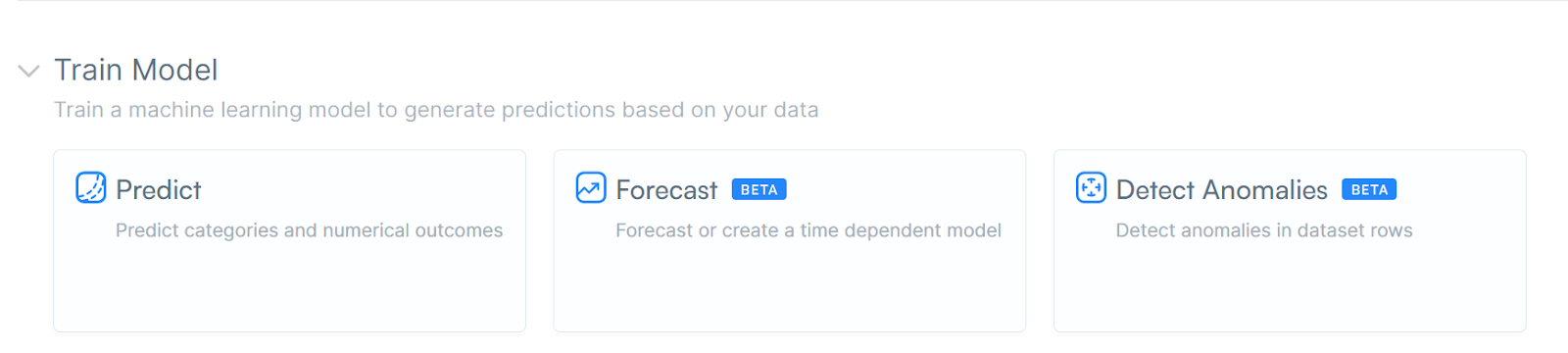 A prediction model simply requires you to pick a column, and the algorithm will do the rest. All you need to do is sit back and watch the model train itself.