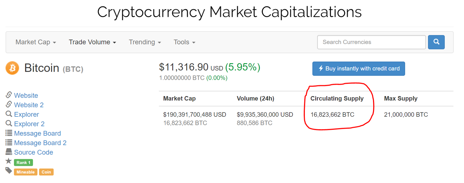 https://coinmarketcap.com/currencies/bitcoin/ to see the exact amount of Bitcoin in circulation