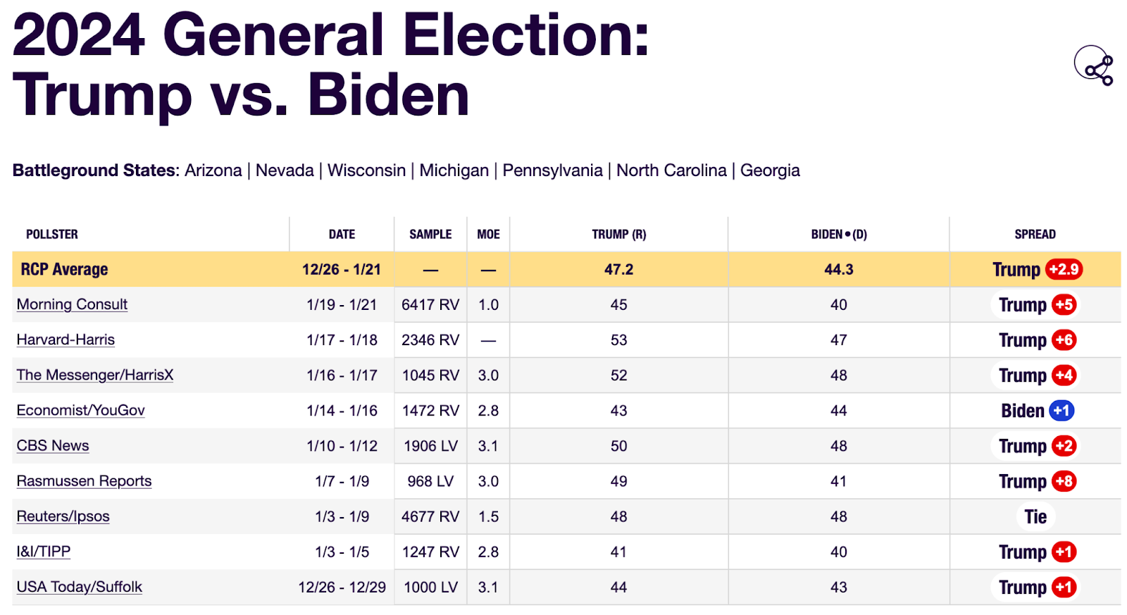 And this is why, according to the most recent polls, Trump is a slight favorite to beat Biden.