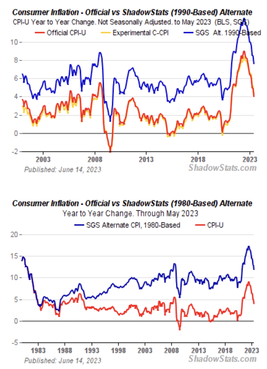 The current Consumer Price Index (CPI) calculation methodology is Fugazi. If we go back to the 1980 or 1990 CPI calculation methodology, the actual rate of inflation is around +10% vs. the +3% rate you read in the news.