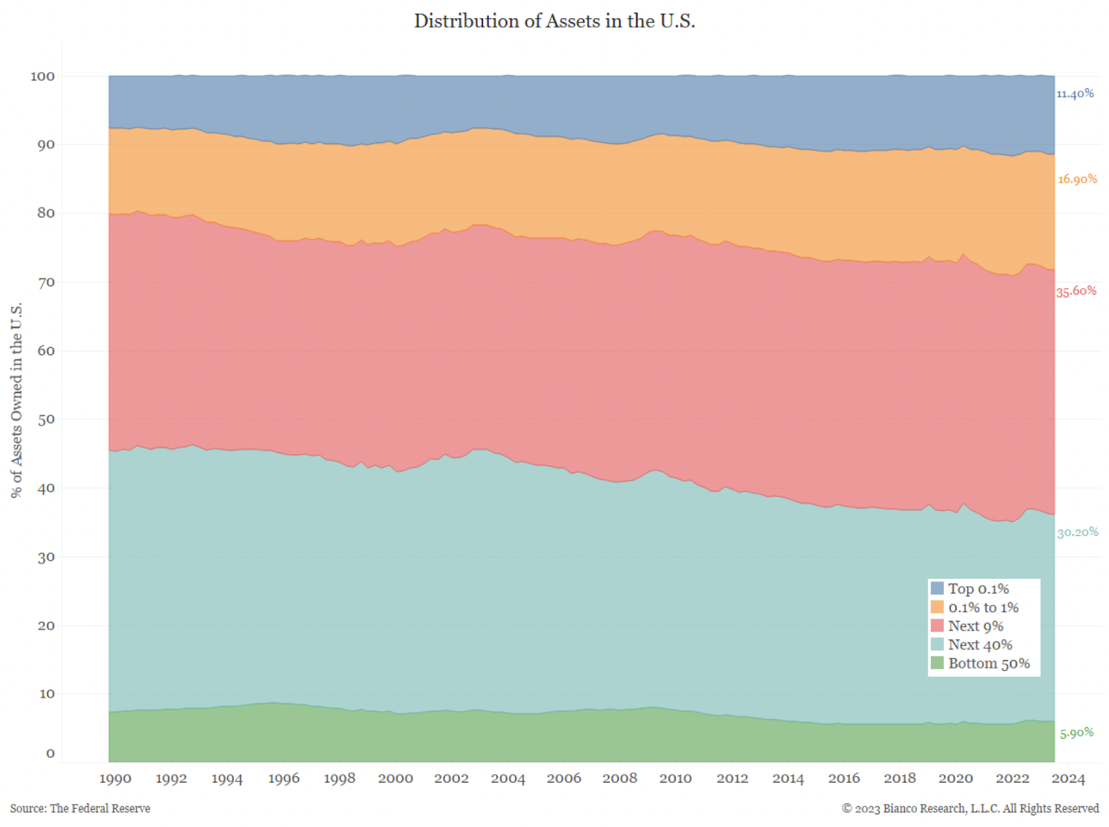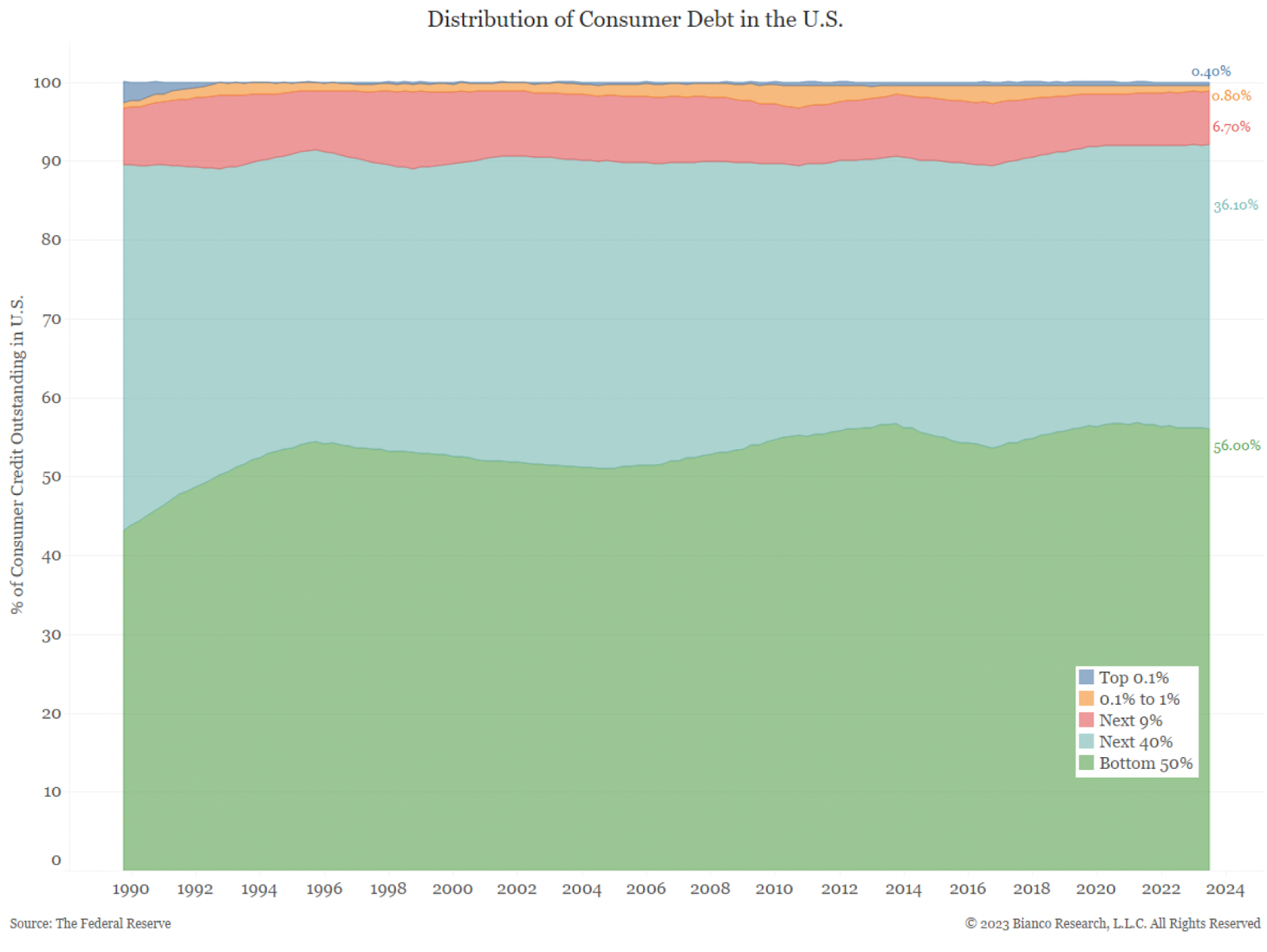 The top 10% holds ~65% of all financial assets but only ~8% of the debt. The bottom 90% holds 92% of the debt but only 35% of the assets. This highly unequal distribution of wealth and debt presents a problem for a politician in a democracy. While the politicians endeavor with great resolve to do all in their power to make the rich richer, they need to get elected by garnering support from the broke plebes. This is why when inflation shows up, it’s a problem.