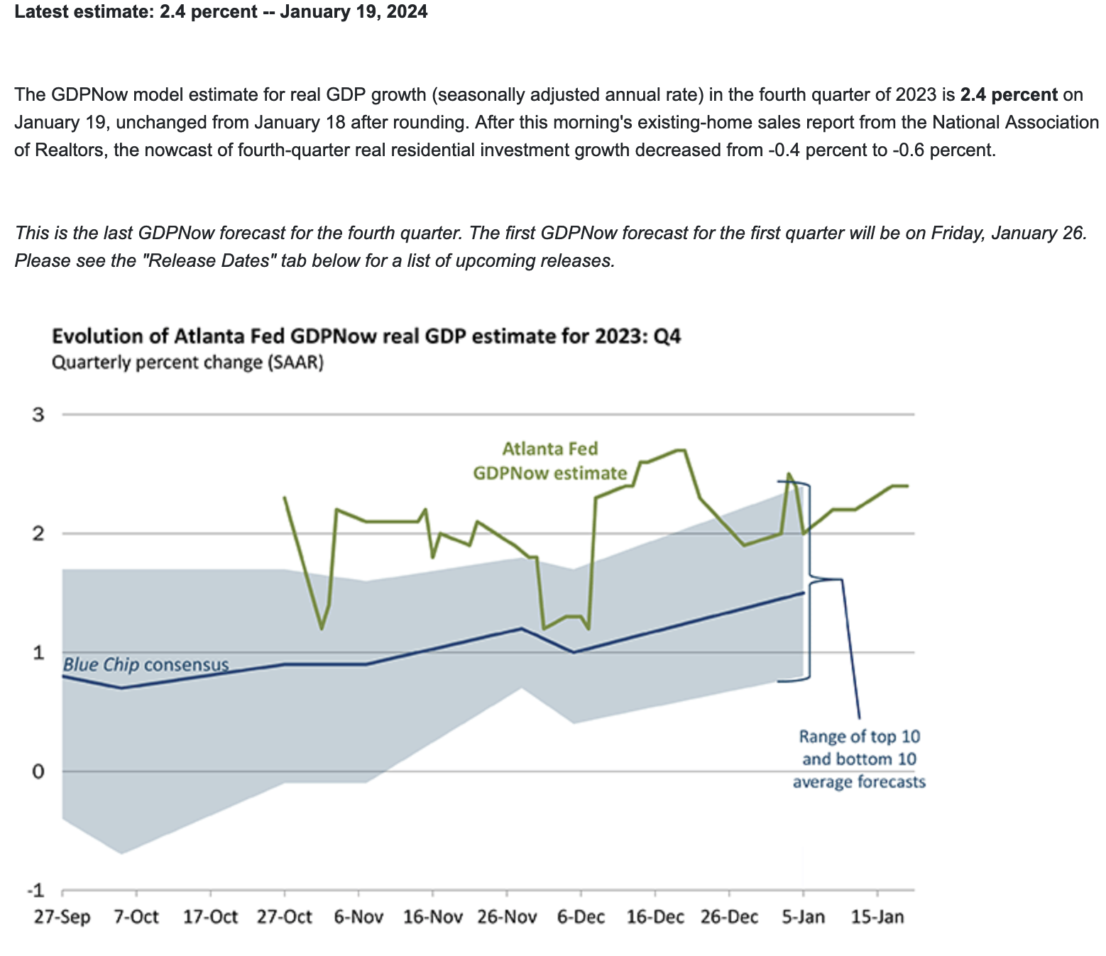The Atlanta Fed estimates 4Q2023 GDP growth will clock in at a strong +2.4%- strong to very strong!