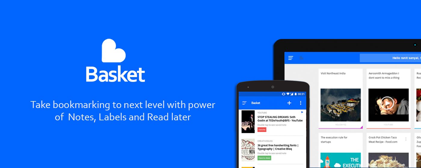 Gathering resources for your presentation or learning new tricks while coding, reading news or just to pass time, everyday we come across information that we need later. Basket is your perfect place to keep them and find just when you need it, even in Google.