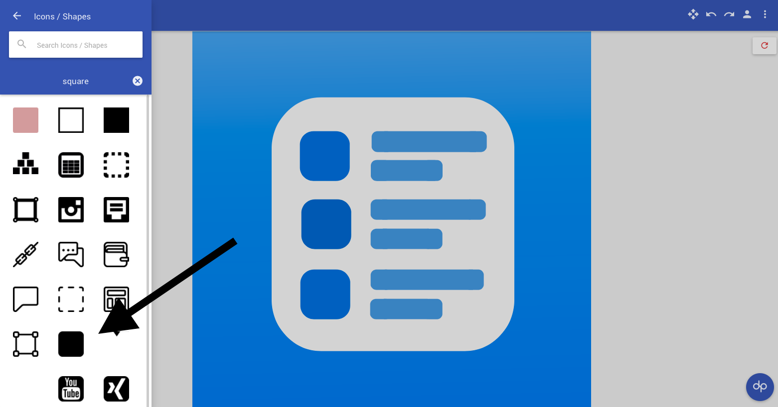 Designapp may not be the best design client, feel free to use Photoshop if you have it, but it lets you make app icons with our limited rules. You can many geometric shapes and color gradients, but I used one shape, the rounded square.