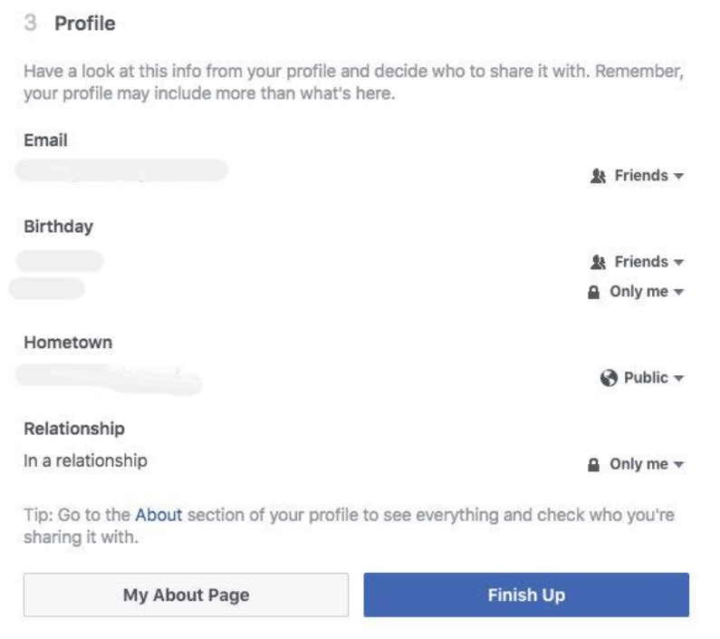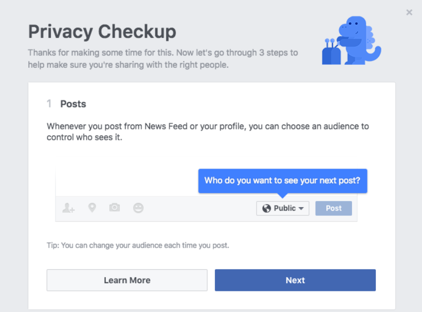 Facebook will guide you through three steps to make sure you’re sharing your posts with the right people. Let’s go over each step now.