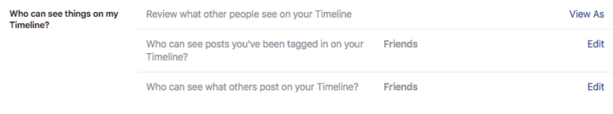 This is the section where you get to choose who can see both what you’ve posted and what friends have posted on your timeline. There’s also a “View As” button, which lets you see how your timeline looks to the public or a specific person. It’s a great way to review what you’re revealing on your profile.
