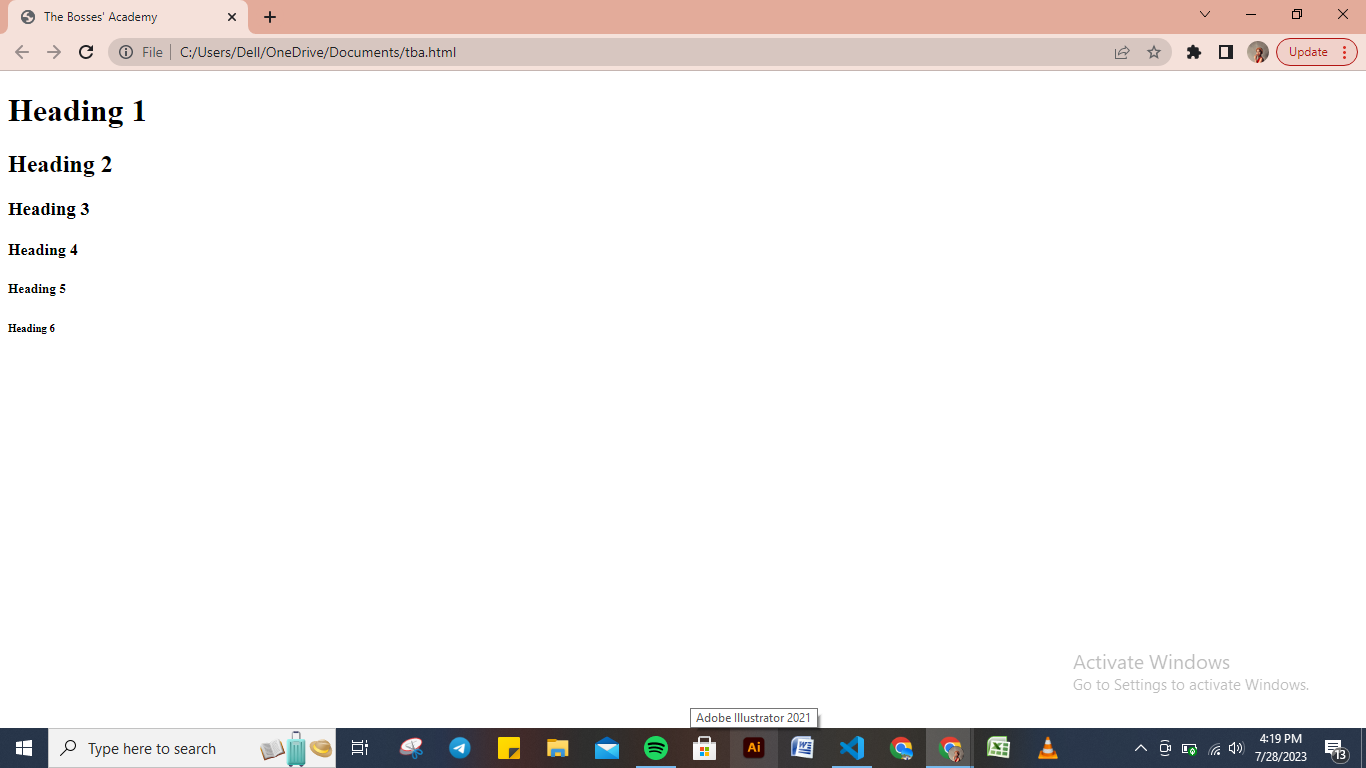 Note: Henceforth, every code you see should be placed in the body section of your HTML code. Once you open VS code, create a new file, name it, place .html at the end of its name, and click enter — that’s how to create an HTML file. Next, type html:5 and click enter.