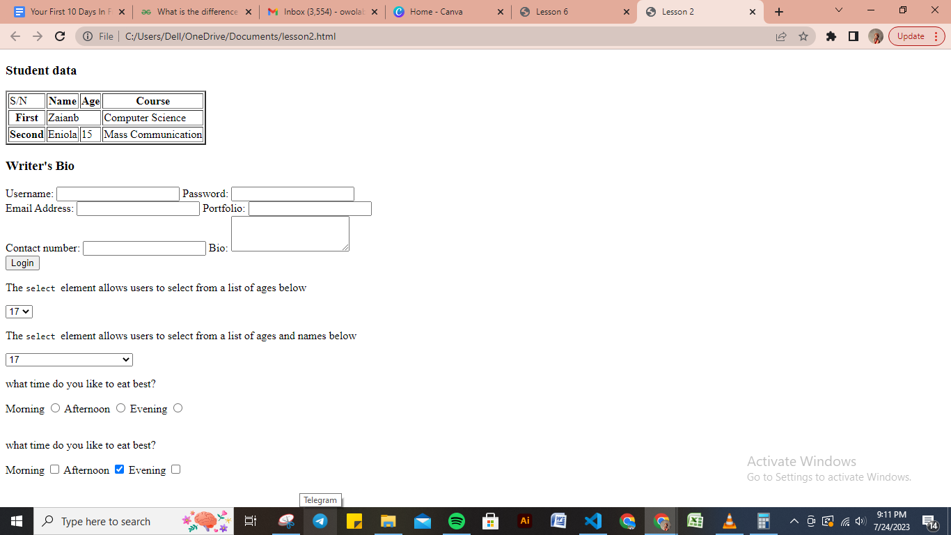 I thought it would be boring if you didn’t try things yourself, so you should write the HTML code to produce this output independently.