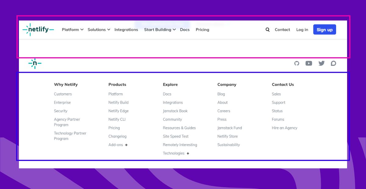 Example of a header and footer: The part in the pink box is the header, while the part in the blue box is the footer.