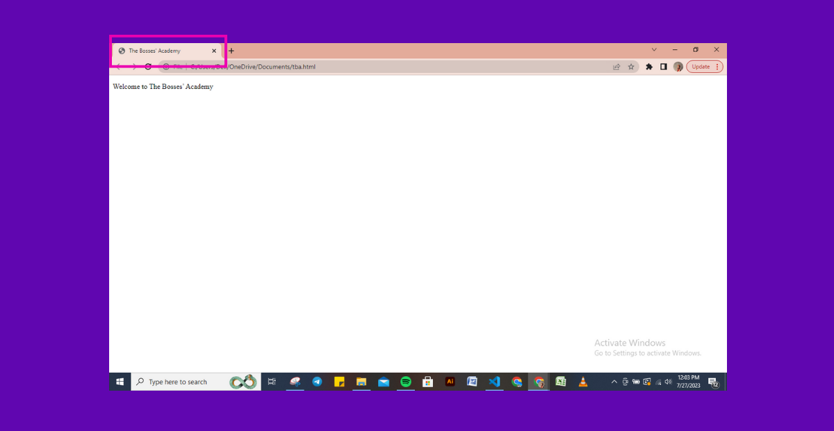 It embodies everything you can see on the webpage, like the “Welcome to The Bosses’ Academy” text above.