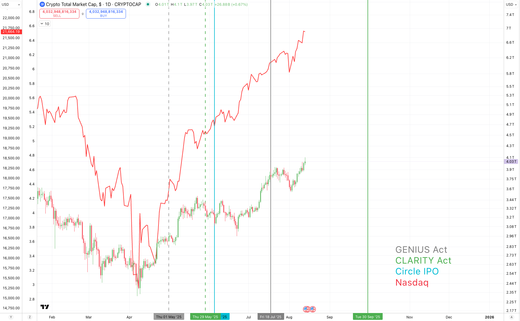 The GENIUS Act had been introduced on May 1, over a month prior to the IPO. The Act was laying the framework for how digital asset companies could compete in offering stablecoins.