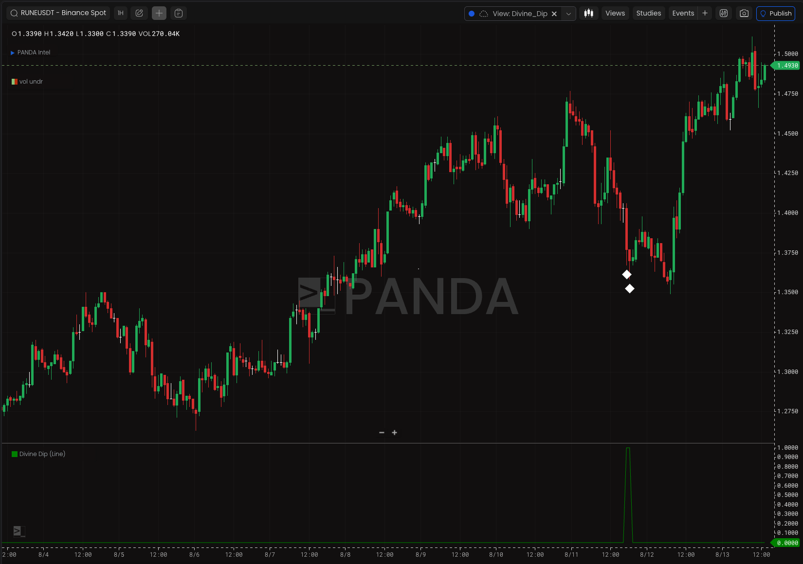 You can go ahead and type in whatever ticker you want in the upper-left corner of the Terminal and see how Divine Dip looks on whatever asset you want to study.
