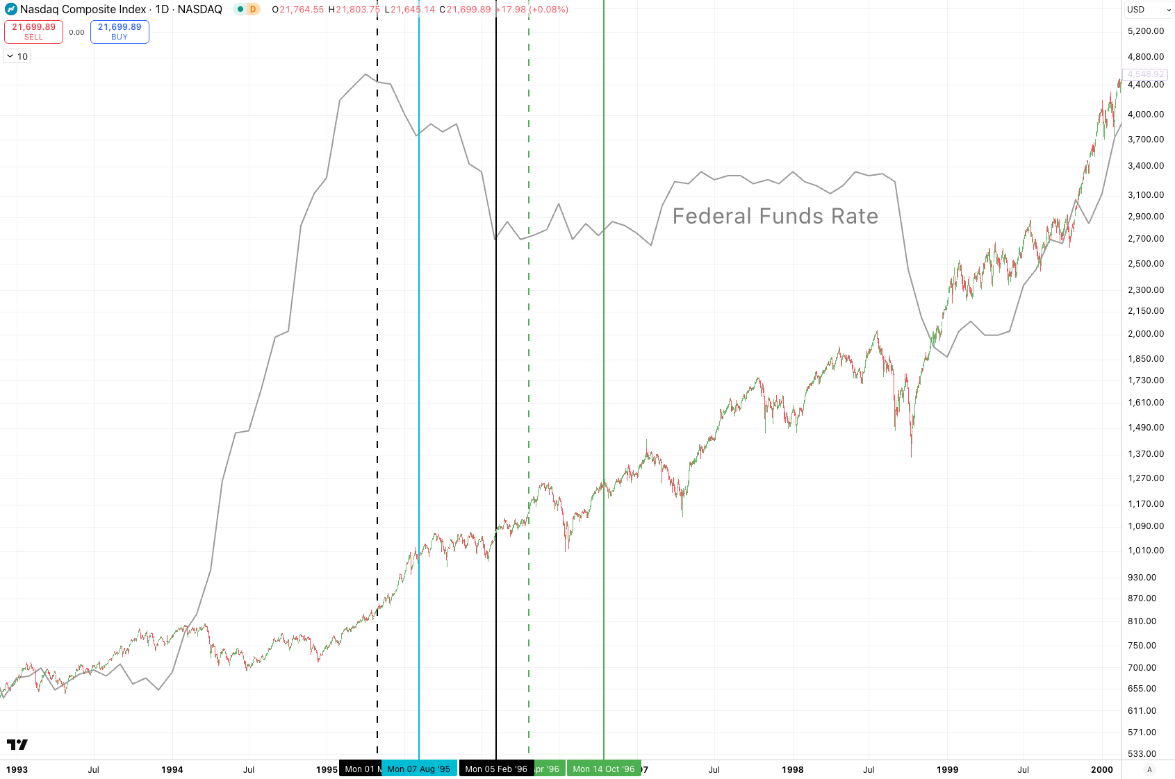 Then in 1995, the Federal Reserve reversed course on its rates.